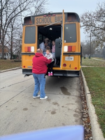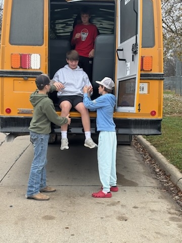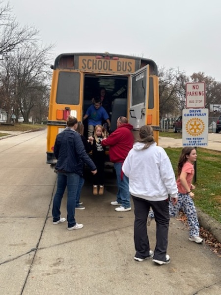 Students at the Lamoni Community School District participated in one of the required bus evacuation drills this morning. The students (PK-12) braved the gloomy day and were wonderful listeners while the drivers talked about general bus safety, using the emergency radios, and alternative bus exits. Students were then exited from the back of the bus – their favorite part of the drill.